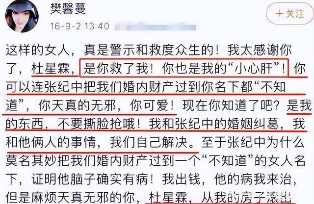 前妻爆“插足”大瓜,账号改名躲争议 之前张纪中还隔三差五发家庭视频,秀和杜星霖的恩爱、带娃的日常。 可从今年开始,画风突然变了。 先是小女儿直播引发争议,评论区吵翻了天,紧接着张纪中的前妻直接曝出大瓜。