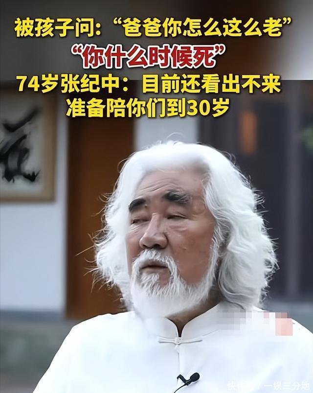 孩子童言戳痛处,104岁陪娃的“空想” 视频里的他,满头花白头发,脸上也有不少皱纹,穿件白色中式衬衫,看着比实际年龄还显老。 他对着镜头,说起了孩子问他的两个问题,语气里全是无奈。 孩子问:“爸爸,你怎么那么老?” 还问:“爸爸,你什么时候死?” 这俩问题,换谁听了都难受,尤其是对74岁的张纪中来说。
